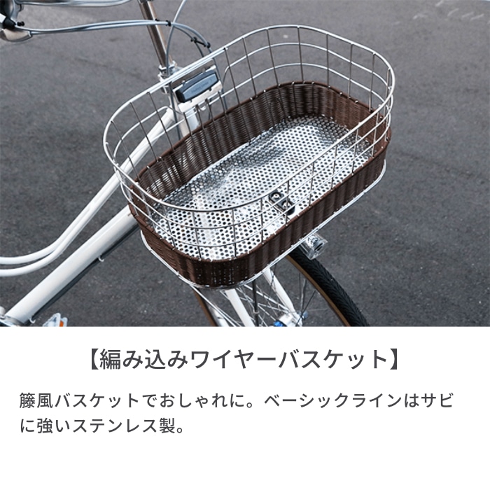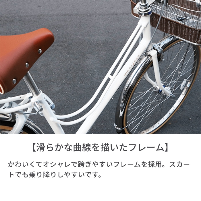 かわいい見た目が女性に人気の、カジュナのデラックスモデル(チェーンタイプ)です。機能だけの自転車はつまらないけど、デザインだけで実用性がなければ意味はない。そんな悩みはカジュナが解決してくれます!クラシカルで上品な見た目とは裏腹に、機能面も充実しています。何でも入る大きなバスケットに安心のオートライト、内装式ギアなど高スペックです。毎日の通勤通学にも使えるし、もちろん休日のお出かけでも活躍してくれる。横幅なんと44cmの大型バスケットにワイドミニオートライト、各パーツはサビに強い素材でワンランク上のデラックスモデルです。上品な見た目なので女子中高生から大人の女性まで、世代問わずお乗りいただけます。内装変速や錆びにくいアルミハンドルを搭載した長く使える一台です。※当サイトではチェーンタイプのみ取り扱っております。