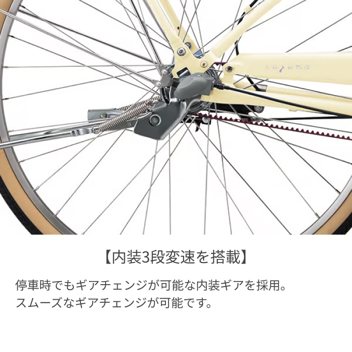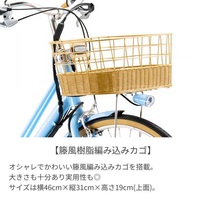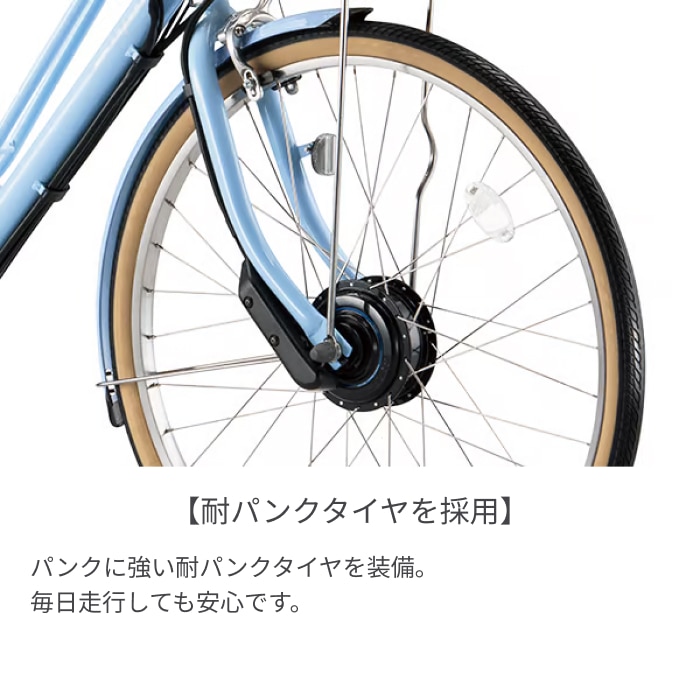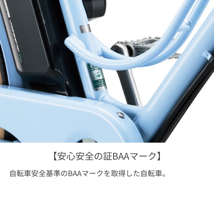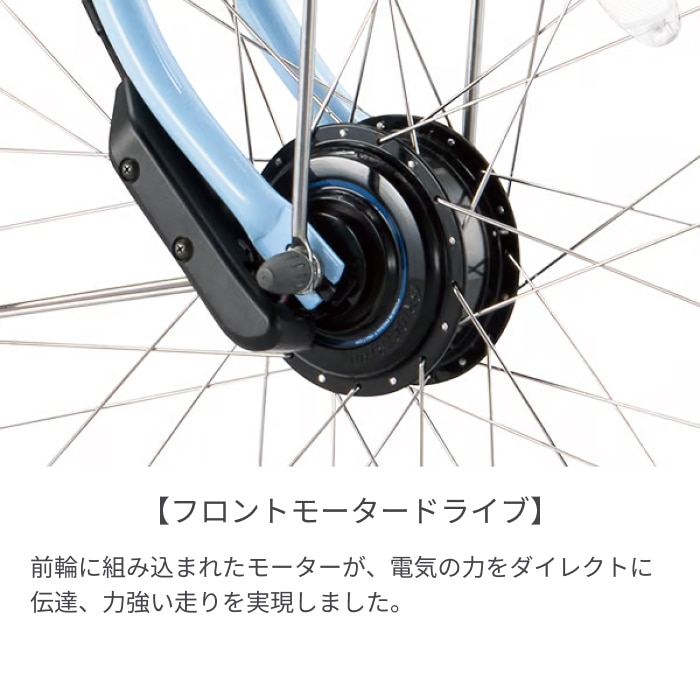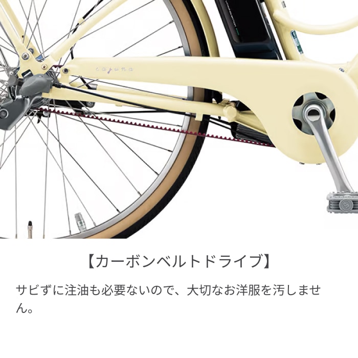 走りながら充電できる両輪駆動を搭載した、女性に人気のカジュナの電動アシストモデル!バッテリー容量は14.3Ah相当。様々な困難が待ち受ける通学・通勤路。少ない力でブレーキをサポートしてくれるブレーキアシストシステムは、手がかじかむような寒い日や、長い下り坂でも、レバーを強く握り続けることなく、楽に減速することができます。また、スカートでも跨ぎやすい弓状に曲がったフレーム、スクールバッグを横にしても余裕で入りお弁当も水平に保てる底板付の大きなカゴ、暗くなったら自動で点灯するオートライト、楽な姿勢で持ちやすいハンドルなど、日々の通学を支えます。