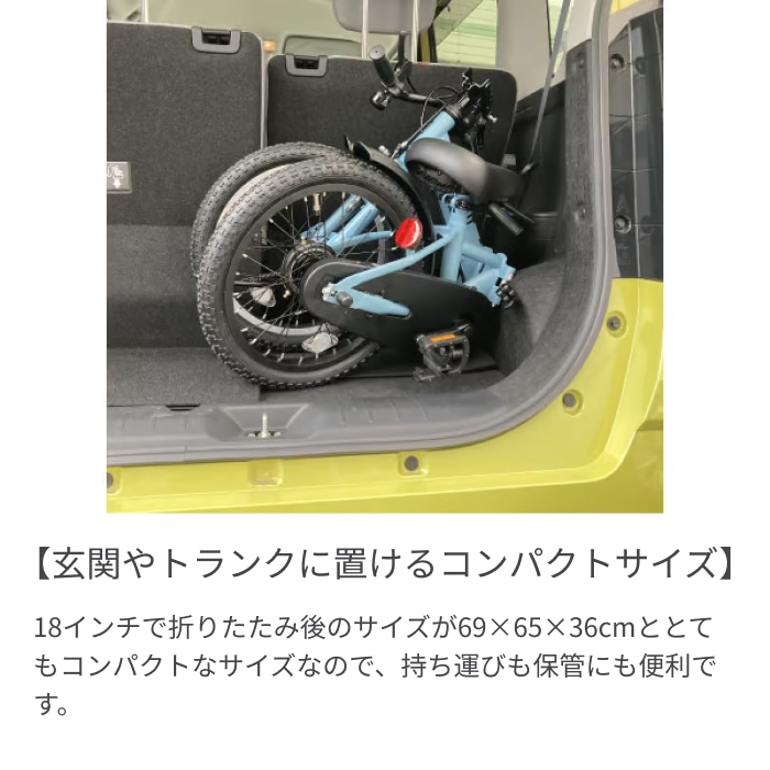 「ブレイクアウトキッズ・フォールディング」は工具不要で、折りたたみ後のサイズが69×65×36cmととてもコンパクトなので車に乗せることや、玄関にも保管が可能です。お子さまの自転車の練習やお出かけで車に乗せていつもと違った場所に行ってみませんか?