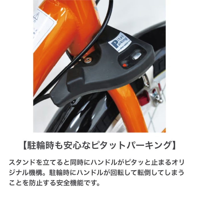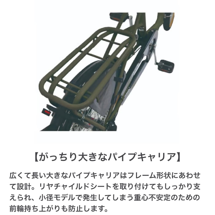 「ふらつかない」子ども乗せ自転車ふらっか~ず。 20インチの太目のタイヤ、ハンドルロック機能、大型の両立スタンドなど子乗せ自転車の基本装備を押さえたモデルです。 フロントチャイルドシートにはSG規格に完全対応したOGK製の商品を採用。ヘルメットにも使われる超衝撃吸収素材を使用したヘッドレスト、5点式シートベルトなど全てにおいてワンランク上を求めた設計のチャイルドシートで万が一の転倒時、お子様の安全をしっかり守ります!