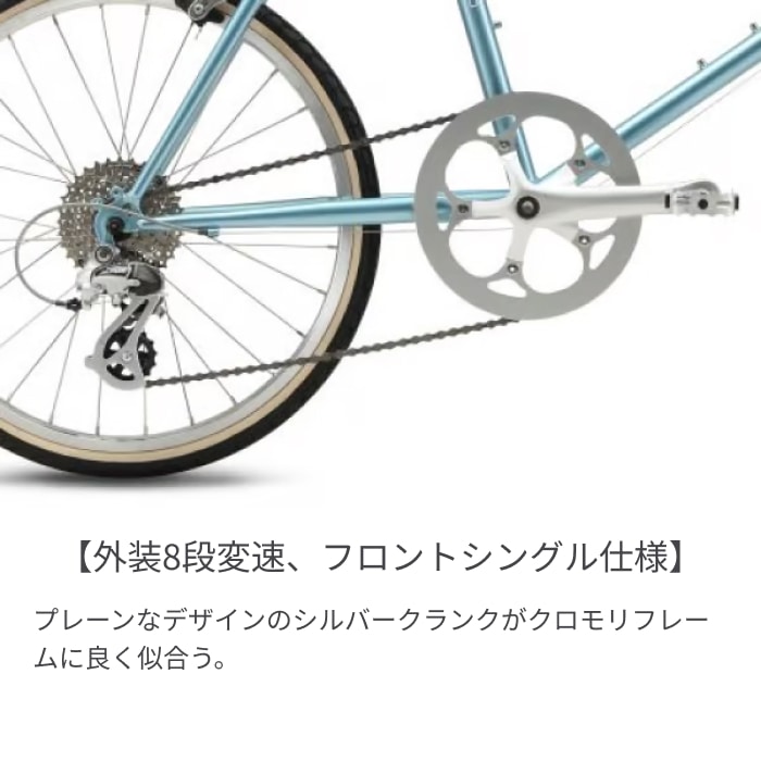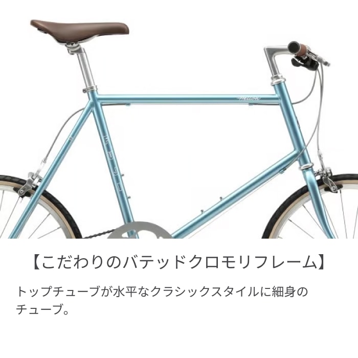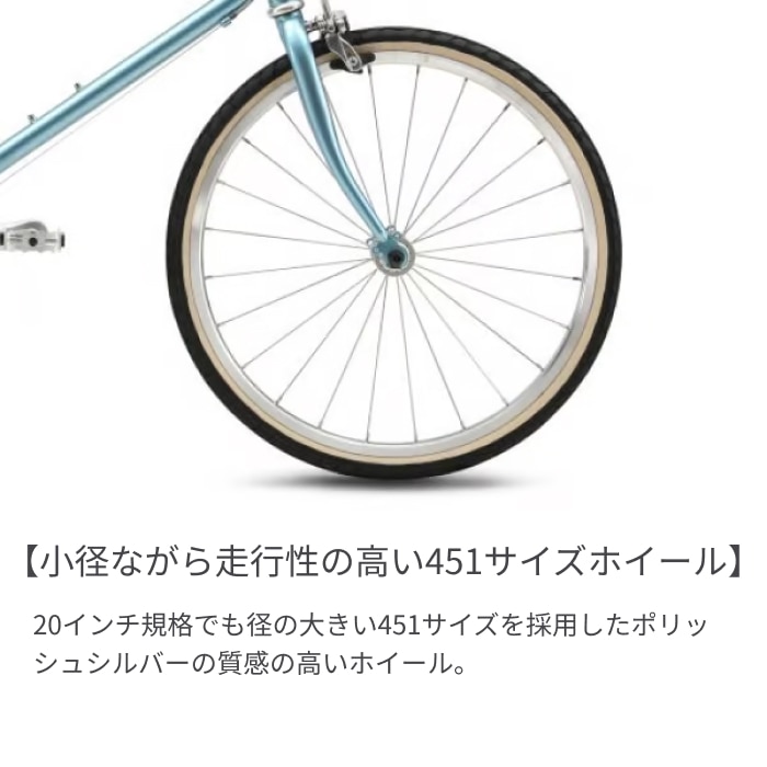 走れるミニベロをコンセプトに、スポーティな走行性能へのアイデアが詰まったミニベロ「ヘリオン」。こだわりのバテッドクロモリフレームには一般的なクロモリチューブよりひと回り小さな径が採用され、スキニーなビジュアルとシャープな走行性能を両立。質感の高いポリッシュカラーを纏ったホイールはレトロなルックスを演出する一方で、451サイズの採用によって走行性能も抜かりなし。44~55cmの幅広いフレームサイズ展開で、小柄な女性から背の高い男性までジャストフィットします!
