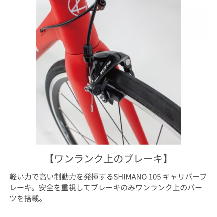 KhodaaBloom(コーダーブルーム)は日本の総合自転車メーカー「ホダカ株式会社」が2008年に立ち上げたスポーツバイクブランドです。ブランド名は、社名であるホダカ(Hodaka)のアナグラム(文字の入れ替え)です。「K」の文字をアタマにもってきたのは「希望」をもってこのブランドを展開しようという願いを込められています。後半のBloom は「華やぐ」という意味でスポーツバイクのある華やいだ生活を提供しようという想いを体現しています。FARNAシリーズは重量剛性比の高いアルミ合金を組み合わせたパイプにトリプルバテッド加工することでフレームを構成するパイプの軽量化を追求。また、手作業で溶接部の凹凸を研磨することで軽量性を追求しつつ、応力集中の原因となる溶接部の急激な肉厚の変化を除去。「軽さ」と「強度」を両立したフレームを実現しています。パーツ構成はブレーキからホイールに至るまでシマノ製パーツで統一されコンポーネントはTiagraを搭載。ブレーキのみ上位グレードのシマノ105を採用し確かな制動力とスピードコントロールもしやすくなっています。