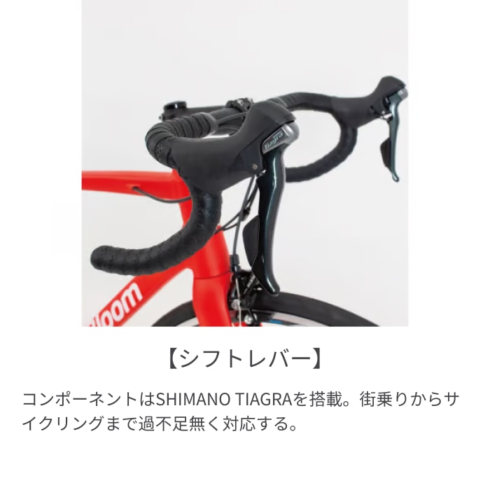 KhodaaBloom(コーダーブルーム)は日本の総合自転車メーカー「ホダカ株式会社」が2008年に立ち上げたスポーツバイクブランドです。ブランド名は、社名であるホダカ(Hodaka)のアナグラム(文字の入れ替え)です。「K」の文字をアタマにもってきたのは「希望」をもってこのブランドを展開しようという願いを込められています。後半のBloom は「華やぐ」という意味でスポーツバイクのある華やいだ生活を提供しようという想いを体現しています。FARNAシリーズは重量剛性比の高いアルミ合金を組み合わせたパイプにトリプルバテッド加工することでフレームを構成するパイプの軽量化を追求。また、手作業で溶接部の凹凸を研磨することで軽量性を追求しつつ、応力集中の原因となる溶接部の急激な肉厚の変化を除去。「軽さ」と「強度」を両立したフレームを実現しています。パーツ構成はブレーキからホイールに至るまでシマノ製パーツで統一されコンポーネントはTiagraを搭載。ブレーキのみ上位グレードのシマノ105を採用し確かな制動力とスピードコントロールもしやすくなっています。