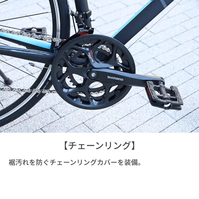 サイクリングや街中など幅広い用途で走りやすいロードバイクに必須パーツをセット。大切な自転車を盗難から守るワイヤー錠、夜道での走行に必須のライト、日ごろのメンテナンスに役立つエアポンプがセットになっているので、届いたらすぐ乗り出せます。風をきるような走行性能を実現するメインコンポーネントはシマノ製「Tourney」を採用。フロントは2リア7の14段変速機を搭載し、あなたが思うままの走行が可能に。アルミフレームを採用し、車体重量はなんと9kg台。ロードにおいては車体の軽さで乗りやすさも変わるのでこだわりたいポイント。品質だけではなく洗練されたデザインが日常にアクセントを加えます。日本メーカーのホダカがつくるGIANT工場で作られたフレームは、品質と頑丈さは折り紙付き。