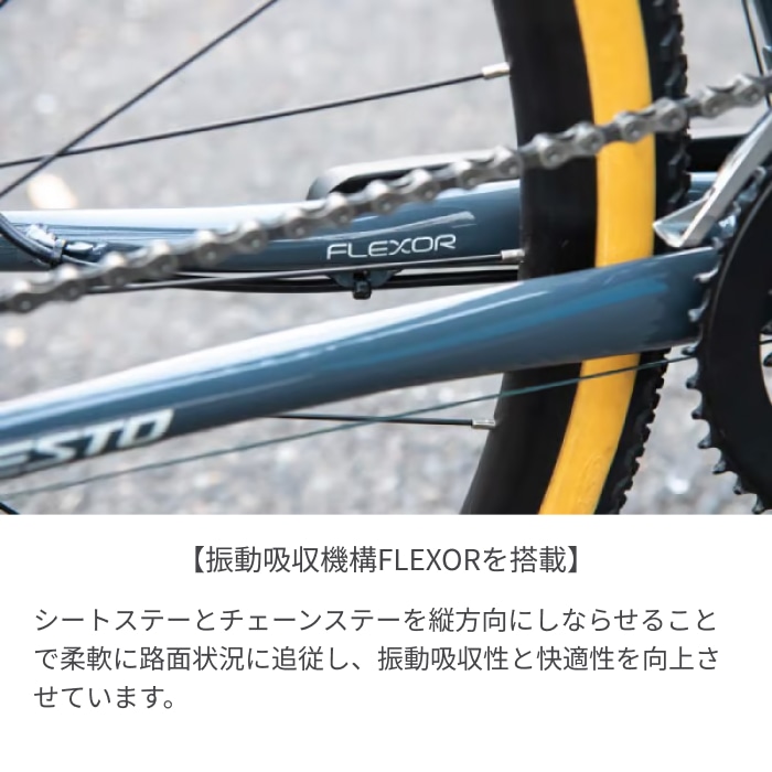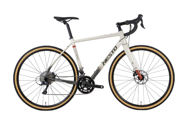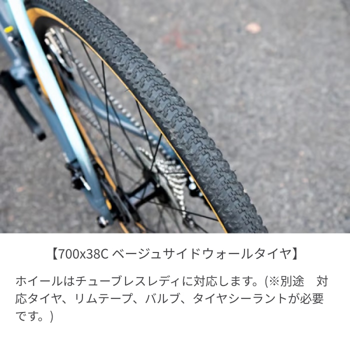 グラベル(GRAVEL)は英語で砂利道という意味で、グラベルロードバイクはタイヤが太めで砂利道や未舗装路などのオフロードも走れる今人気のスポーツバイクです。グラベルロードバイクはベースがロードバイクのため、オフロードだけでなくオンロードでの快適性も高く、路面の状況を選ばず遠くまで走ることができます。また車体の拡張性も高く、キャリアをつけて積載量を増やしキャンプや長距離ツーリングを楽しむことができます。GAVELはグラベルロードバイクやキャンプツーリングに興味を持った方の最初の一台として最適です。フレームに4箇所、フォークに2箇所のボトルケージ台座を装備し、高い積載性がさまざまなスタイルのツーリングライドに対応。また、タイヤが太めなのでタイヤが細いロードバイクが怖いという方にもおすすめです。