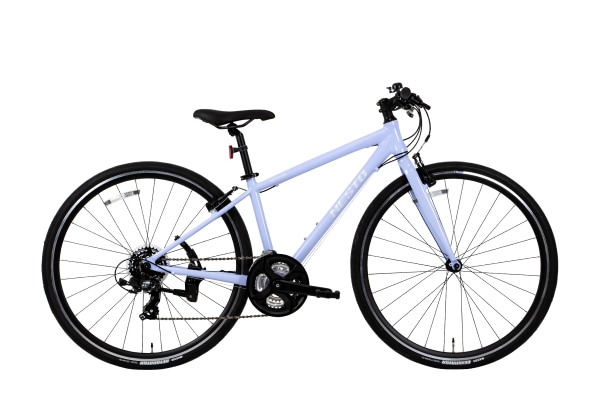 ベル、スタンド等の装備が充実し、気軽に街乗りできるクロスバイクです。やや太めの32Cタイヤは空気量が多いため路面の凹凸や段差の衝撃を吸収し、安定感があり乗り心地もGOOD。信頼のシマノ製フロント3×リア7の21段変速機を搭載し、サイクリングにも十分対応できるギア幅です。新設計された軽量で頑丈なアルミフレームで日本人の体によりフィットするようになりました!重量も軽くなり、キビキビとした走りが魅力です。オプションパーツの泥除けなどを装着することで日常使いの利便性をさらに高めることができます。シティサイクルからの乗り換えでも安心して走ることができるので、最初のスポーツバイクとして選ぶには間違いのない一台です。