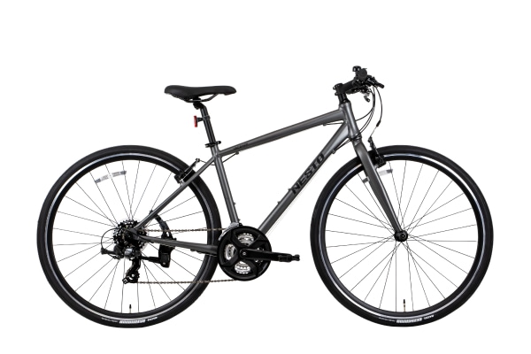 ベル、スタンド等の装備が充実し、気軽に街乗りできるクロスバイクです。やや太めの32Cタイヤは空気量が多いため路面の凹凸や段差の衝撃を吸収し、安定感があり乗り心地もGOOD。信頼のシマノ製フロント3×リア7の21段変速機を搭載し、サイクリングにも十分対応できるギア幅です。新設計された軽量で頑丈なアルミフレームで日本人の体によりフィットするようになりました!重量も軽くなり、キビキビとした走りが魅力です。オプションパーツの泥除けなどを装着することで日常使いの利便性をさらに高めることができます。シティサイクルからの乗り換えでも安心して走ることができるので、最初のスポーツバイクとして選ぶには間違いのない一台です。