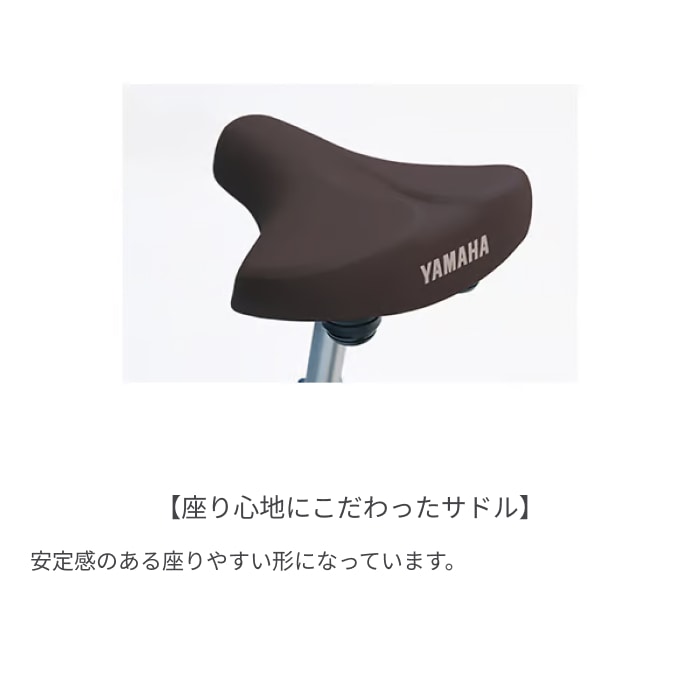 YAMAHAのスタンダートモデルが進化しました!「スマートパワーアシスト」を搭載し走行中状況に応じて賢く自動でパワーコントロールします。さらに坂を上っている時のアシスト力を従来の約1.5倍に高める事により力の弱い方でもより簡単に坂を登れるようになりました。アシスト力が上がっても、一度の充電で最大100kmも走行可能なので長距離のお出かけでも安心です。自転車本体の設計も見直し、サークル錠をキャリア後方に配置する事で駐輪時の操作性の向上を図ったり、リアキャリアの形状の変更と取付け位置の変更により荷物やオプションのチャイルドシートを取り付けた時の安定性が向上しました。2024モデルからはバッテリーがコンパクトになり片手で取りはずしやすく軽くなりました。
