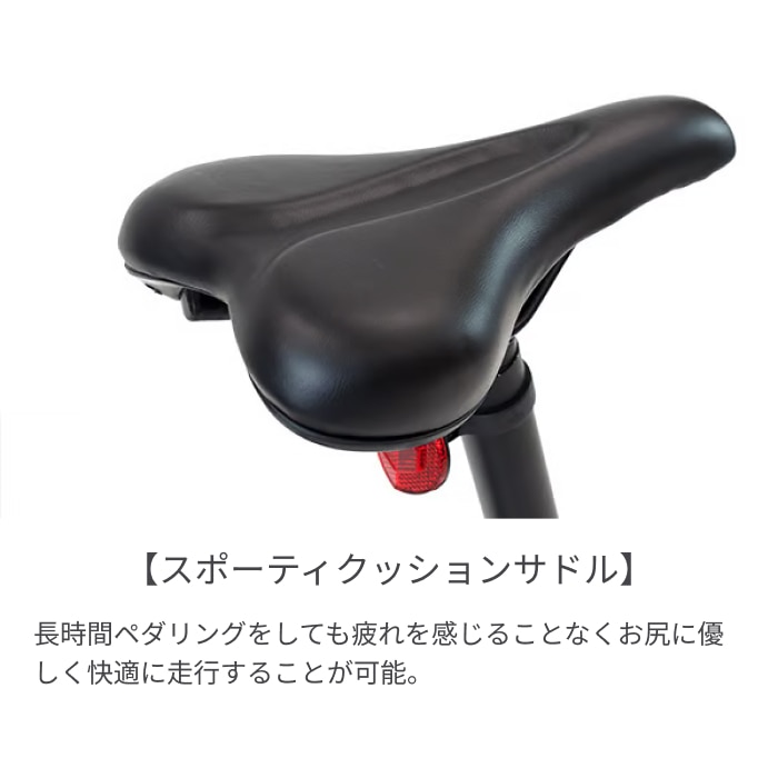 質感がカッコいい、シンプルながらインパクトを与える一台!3色とも深く上品なカラーで仕上げブラックパーツとのコントラストが美しい自転車です。信号の多い街中ではタイヤが小さい自転車を選ぶことで止まるときも漕ぎ出しの際もスムーズ。折りたたみならいざというときにコンパクトになるので交通手段を選ばないところも嬉しいポイント。さらに快適なクッションサドルで、長時間の走行でも快適な乗り心地をサポート。走行性の高さを重視しながらも、折りたたみの特性であるコンパクトで軽量という部分にもこだわりました。※2018年7月より、より強度の高いペダルに変更致しました。