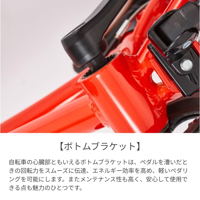 wimo kids は、希少なベルトドライブを採用。 チェーンに比べ、耐久性が高く注油不要で サビや油汚れが洋服に着く心配もありません。フレーム、ペダルをつなぐクランクもサビに強く軽量なアルミ製。シールドベアリングは 防塵・ 防水性が高くメンテナンスが不要です。 ハンドルやペダルの動きをスムーズにして いつまでも変わらない漕ぎ出しの軽さをキープします。ベルトドライブは非常に伸びにくいので、 外れて転倒したり、服が巻き込まれの心配がありません。また、転倒時もチェーンより安全性が高く安心です。小さい手でもフィットするグリップに Vブレーキでしっかり停車。もし、お子様が車体の下敷きになっても軽量モデルのwimo kidsならケガのリスクを最小限にして ひとりでも楽に車体が起こせます。