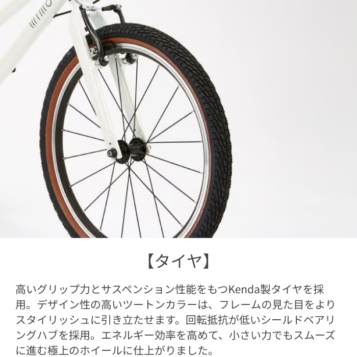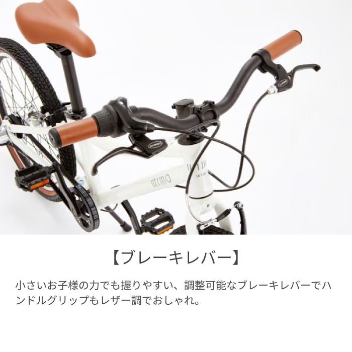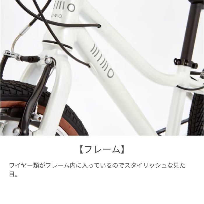 wimo kids は、希少なベルトドライブを採用。 チェーンに比べ、耐久性が高く注油不要で サビや油汚れが洋服に着く心配もありません。フレーム、ペダルをつなぐクランクもサビに強く軽量なアルミ製。シールドベアリングは 防塵・ 防水性が高くメンテナンスが不要です。 ハンドルやペダルの動きをスムーズにして いつまでも変わらない漕ぎ出しの軽さをキープします。ベルトドライブは非常に伸びにくいので、 外れて転倒したり、服が巻き込まれの心配がありません。また、転倒時もチェーンより安全性が高く安心です。小さい手でもフィットするグリップに Vブレーキでしっかり停車。もし、お子様が車体の下敷きになっても軽量モデルのwimo kidsならケガのリスクを最小限にして ひとりでも楽に車体が起こせます。