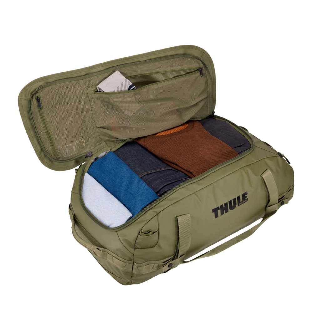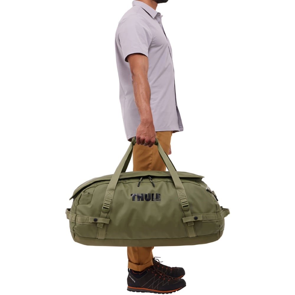 THULE、スーリー、Thule Chasm、70L 、ダッフルバッグ、olivineグリーン、グリーン、オリーブグリーン、短期旅行、旅行、仕事、ビジネス、実用的、アウトドア、リサイクル素材、900Dファブリック、大容量、耐水素材、ターポリン素材、ギフト、プレゼント