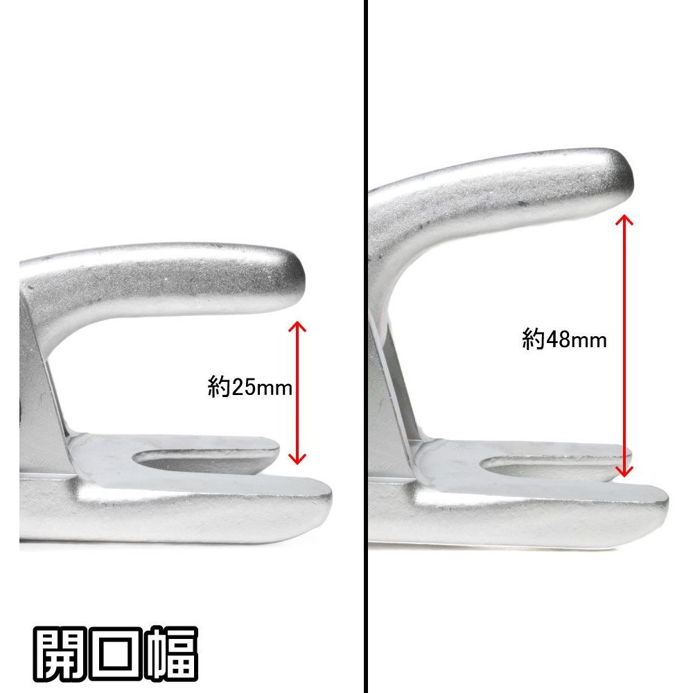 ●完全に固着した、タイロッドエンドやボールジョントには使用できません。●ボルトを締め込むだけではなく、必ずハンマーで打撃を加えながら使用してください。●金属製のハンマーでは、本体を破損させる恐れがあるので、ショックレスハンマーなどを使用してください。