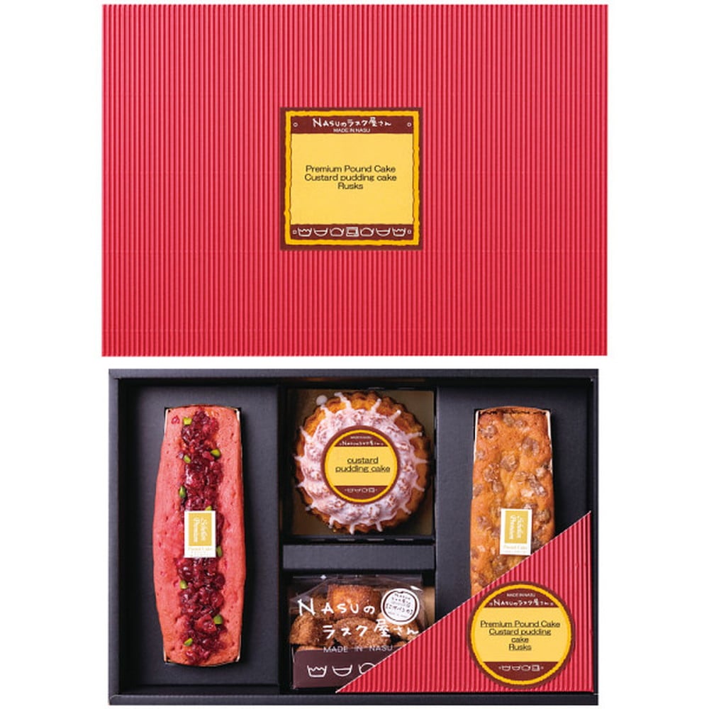 ●クランベリーパウンドケーキ・マロングラッセパウンドケーキ・ミニカスタードプリンケーキ・ラスク(こげパンだ)70g×各1