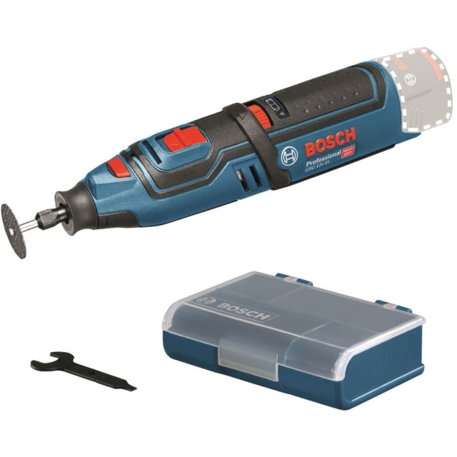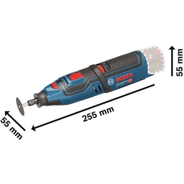 ●ハイパワー35000回転です。●軽量コンパクトです。●LEDライト付きです。●無負荷回転数(min[[の-1乗]]):5000~35000●寸法(mm):240×55×55●適合コレット(mm):0.8、1.6、2.4、3.0、3.2●定格電圧:DC10.8V(ボッシュプロ用充電式専用バッテリー)●回転数:5000~35000min-1(回転/分)●標準付属コレット径:3.2mmφ 質量500g