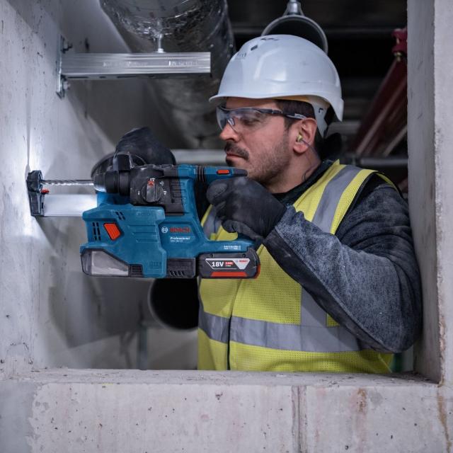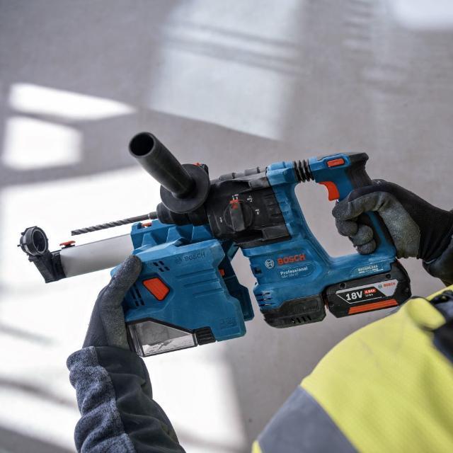 ●打撃力1.9Jの充分なパワーがあります。●破つり作業が可能な3モード搭載です。●キックバック防止機能で安全に作業できます。●振動低減機構(バイブレーションコントロール)搭載で快適に作業できます。●正転・逆転機構があります。●暗所の作業に威力を発揮するLEDライトが付いています。●吸じんシステムGDE18V-12(別売り)をご使用の場合、A1820LIB、GBA18V3.0Ahバッテリーは使用不可となります。●無負荷回転数(min[[の-1乗]]):0~1050●打撃数(min[[の-1乗]]):0~4675●本体寸法(mm):296×207×102●バッテリー電圧(V):18●色:ブルー●穴あけ能力(mm)鉄工:13●穴あけ能力(mm)コンクリート:22●穴あけ能力(mm)木工:20●ドリル径(mm):SDSプラス●能力:コンクリート22mmφ、鉄工13mmφ、木工20mmφ●定格電圧:DC18V(ボッシュプロ用充電式専用バッテリー)●シャンク:SDSプラス●回転数:0~1050min-1(回転/分)●打撃力:1.9J 質量2.3kg