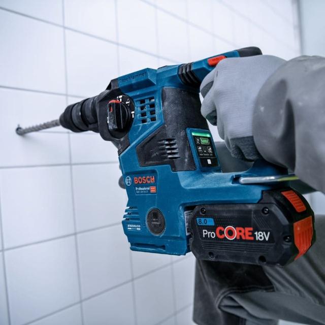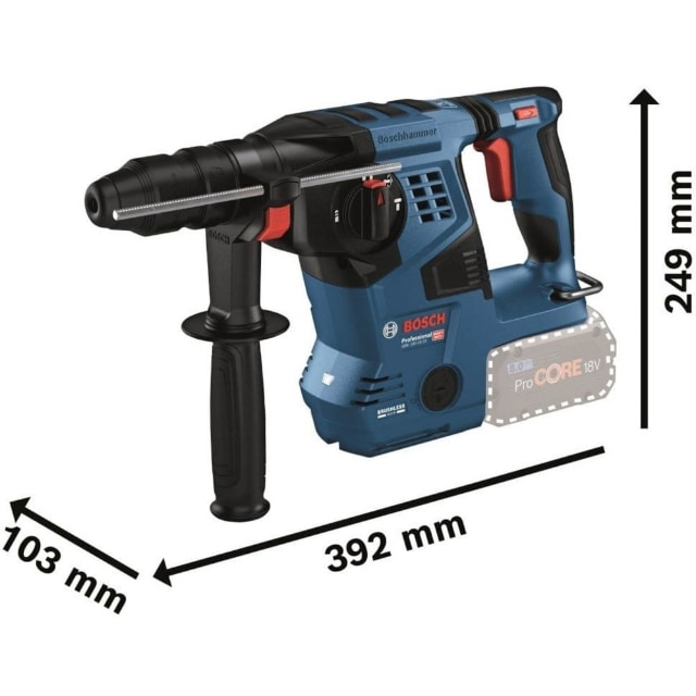 ●クイックリリースシステム採用しています。●打撃力3.3Jの余裕のパワーです。●破つり作業が可能な3モードです。●キックバック防止機能で安全に作業できます。●正転・逆転機構付です。●暗所の作業に威力を発揮LEDライトです。●吊り下げのための、収納可能なフック装備付です。●吸じんシステムGDE18V-16(別売)に対応しています。●スマホと繋げて機能設定が可能なコネクト対応(別売コネクティビティチップGCY42必要)●無負荷回転数(min[[の-1乗]]):0~950●打撃数(min[[の-1乗]]):0~4220●本体寸法(mm):249×392×103●バッテリー電圧(V):18●色:ブルー●穴あけ能力(mm)鉄工:13●穴あけ能力(mm)コンクリート:28●穴あけ能力(mm)木工:30●ドリル径(mm):SDSプラス●SDSプラスシャンク●打撃力3.3J●最小スミヨセ寸法:35mm 質量3.4kg