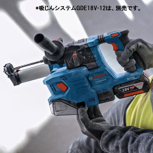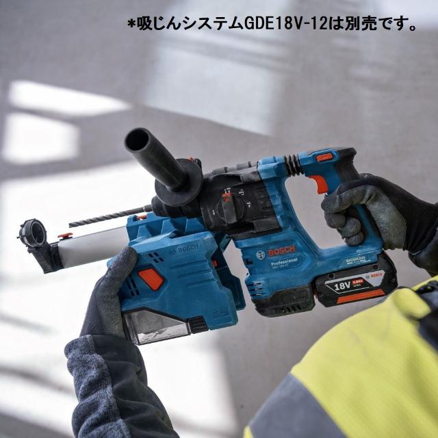 ●打撃力1.9Jの充分なパワーです。●キックバック防止機能で安全作業ができます。●振動低減機構(バイブレーションコントロール)搭載で快適に作業ができます。●吸じんシステムGDE18V-12(別売り)をご使用の場合、A1820LIB、GBA18V3.0Ahバッテリーは使用不可となります。●無負荷回転数(min[[の-1乗]]):0~1050●打撃数(min[[の-1乗]]):0~4675●本体寸法(mm):296×207×102●バッテリー電圧(V):18●色:ブルー●穴あけ能力(mm)鉄工:13●穴あけ能力(mm)コンクリート:22●穴あけ能力(mm)木工:20●ドリル径(mm):SDSプラス●回転数:0~1050min[[の-1乗]](回転/分)●打撃数:0~4675min[[の-1乗]](回/分)●打撃力(J):1.9●能力:コンクリート22mmφ、鉄工13mmφ、木工20mmφ●定格電圧:DC18V(ボッシュプロ用充電式専用バッテリー)●シャンク:SDSプラス●振動3軸合成値:ハンマードリル時13.3m/s2、破つり時9.4m/s2●破つり作業が可能な3モード 質量2.3kg