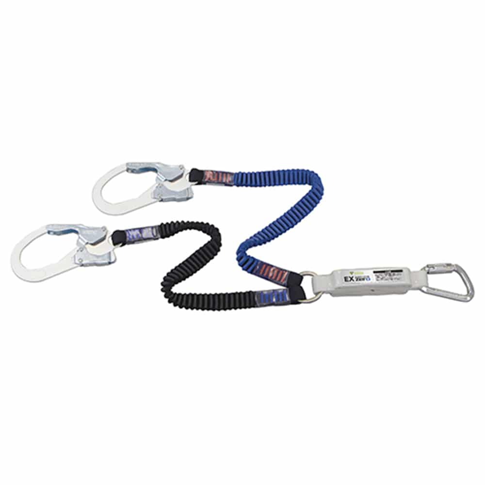 作業姿勢に応じて伸縮するベーシックタイプのダブルランヤードです。 フルハーネスとセットで使うランヤード。 ベーシックな伸縮式のランヤードです。 ●全長:1600(1100)mm。 ●100kg用。