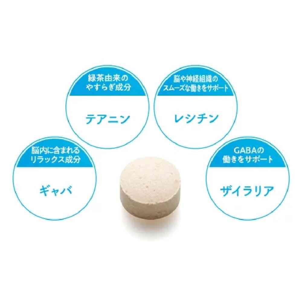 興奮を和らげ、リラックスに役立つテアニン、レシチン、ギャバ配合。 安眠へと導くザイラリアもプラス