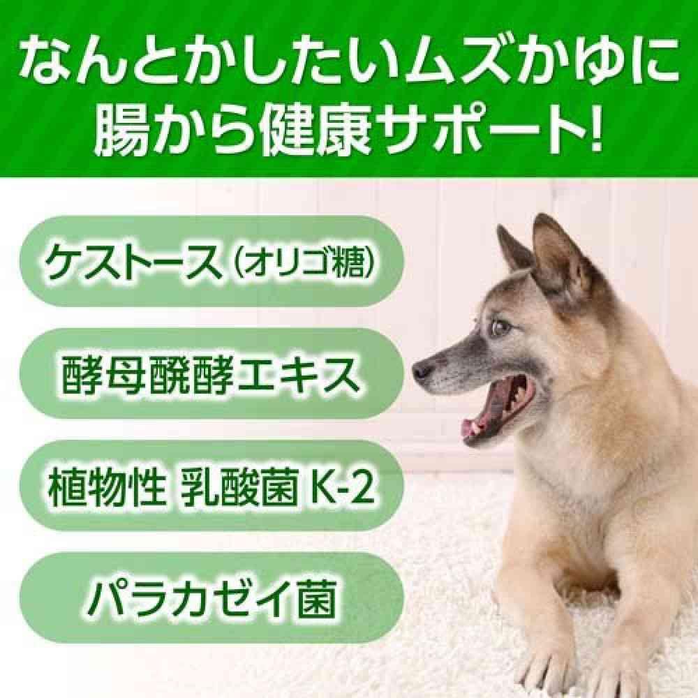 腸内細菌叢を整えるオリゴ糖の一種であるケストースを配合。 ワンちゃんのムズかゆにアプローチ。