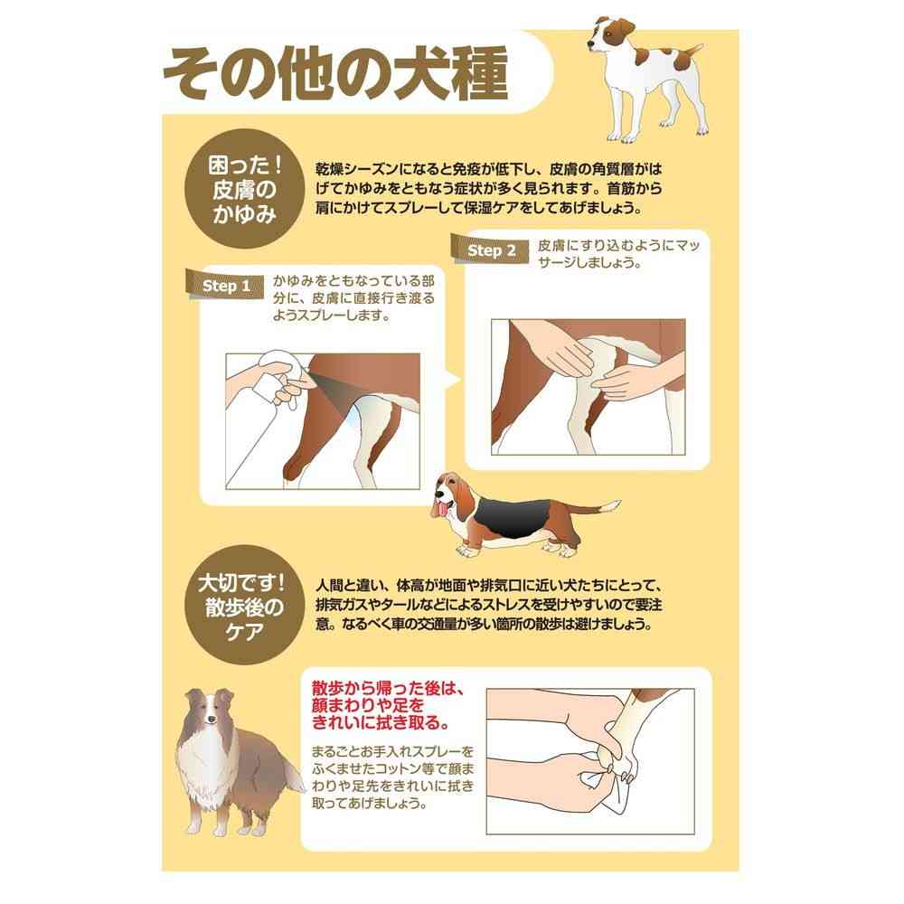 ●被毛・お口・耳・目・足裏・お尻周りのお手入れスプレー。 ●トイレの消臭や虫除けにも、これ1本ですべてOK! ●初めてのお手入れに。