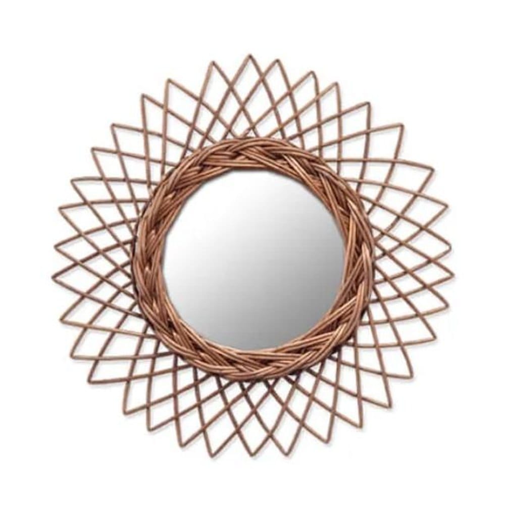 ウィッカーミラー 柳ミラー ハンドメイドミラー 小型ミラー ブラウンカラー ナチュラルインテリア 壁掛けミラー ラタンミラー おしゃれ鏡 リビング雑貨