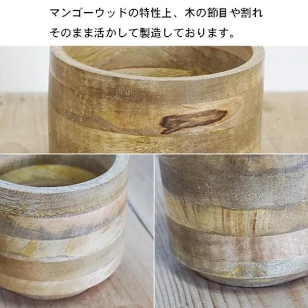 自然素材の温もりで癒し効果倍増 【取扱上の注意】 ※防水、防滴処理は施しておりません。 ※ファンヒーター付近、エアコンの風が直接当たる場所など、乾燥している所には適しておりません。 ※天然木を使用している為製造部位によって色味、木目などの風合いに個体差があります。 ※素材の性質上、直射日光、高温多湿、水漏れにより変色腐食などが発生します。また、乾燥や湿気により木が伸縮する可能性がありヒビや反る恐れがございます。 ※大量生産には無い天然木ならではの風合いをお楽しみ下さい。植物の緑と自然素材の温もりで癒し効果倍増。買ってきたばかりの味気ないプラ鉢も植え替え不要。入れるだけで雰囲気をガラリと変え、優しい印象に仕上げてくれます。