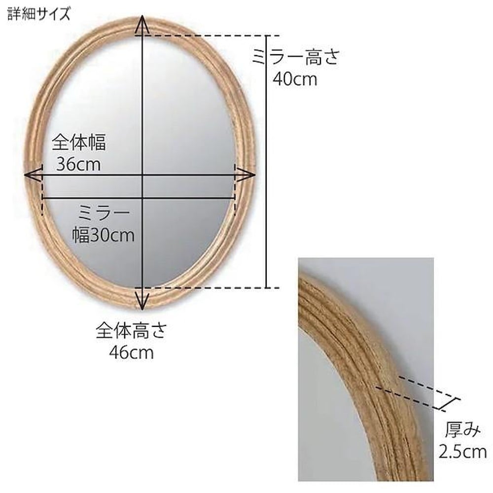 マンゴーウッドミラー 壁掛けミラー オーバルミラー ナチュラルインテリア おしゃれミラー 木製ミラー 縦横兼用ミラー リビングミラー ポッシュリビング 生活雑貨