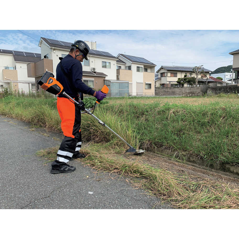 ●草刈り中のエンジン騒音と飛び石を同時解決します。●高トルク特性で低回転域でも草刈りが可能です。●減速回転ハサミ刈りと800W高出力モータ・58V大容量バッテリー●チップソー径(mm):230●無負荷回転数(rpm):~9500●長さ(mm):1880●幅(mm):330●高さ(mm):200●電圧(V):58●充電時間(分):120●ハンドルタイプ:ループハンドル●刈込幅(mm):230●容量(Ah):4.0●連続使用時間(分):30~90●電源:DC58V(リチウムイオン) 質量6.6kg