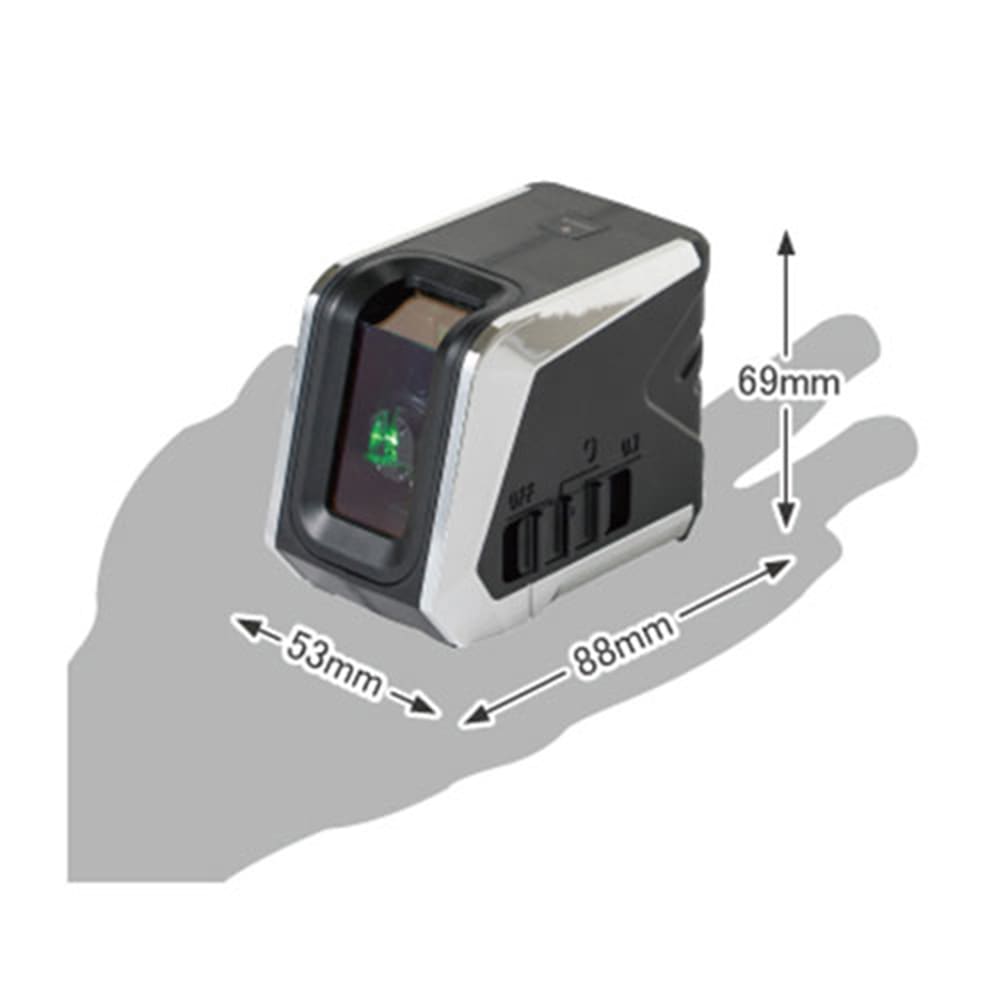 コンパクトなダイレクトグリーンレーザー墨出器です。 建築土木、内装工事、設備工事関係などに。 自由に選べるカスタムフレーム(3色)付です。 回転微動台座付です。 受光器対応です。 購入から1年間の盗難・火災補償付です。 ●精度:水平・垂直±1mm/5m。 ●自動補正範囲:±3度。 ●制動方式:磁気制動方式。 ●連続使用時間:約7時間。 ●使用温度範囲:-10度C~+45度C。 ●電源:アルカリ単三乾電池X2本又は、ACアダプター、又はUSBケーブル。 ●適合受光器:SS-30G。 ●PSC対象外。 ●標準付属品:専用ハードケース・専用本体収納ケース・専用回転微動台座・マグネット付L字金具・カスタムフレーム(シルバー・ゴールド・ブルー)・USB-ACアダプター・USBケーブル(TypeC)・単3乾電池X2本。