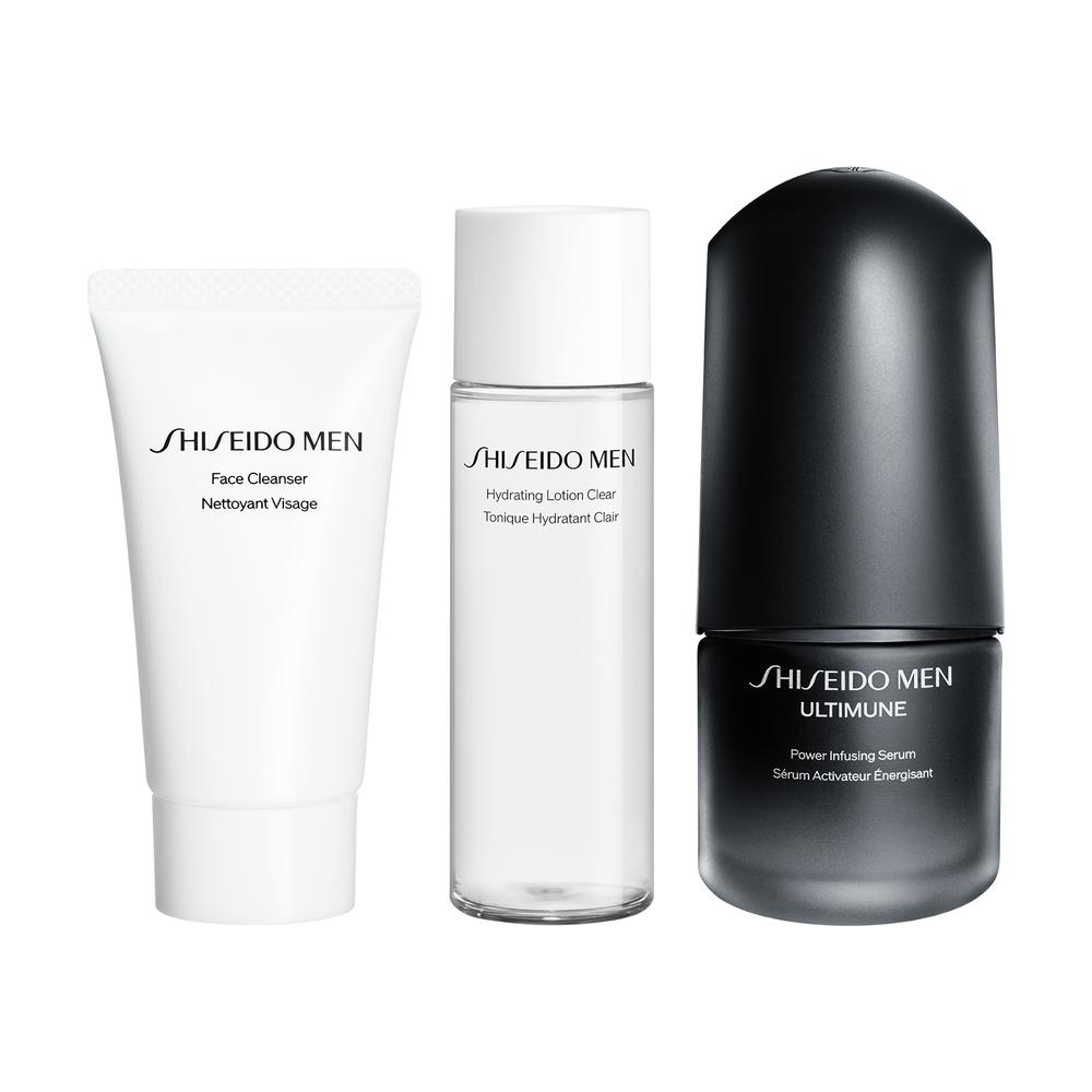 【SHISEIDOメンフェイスクレンザー】水,グリセリン,ミリスチン酸,ステアリン酸,PEG-6,PEG-32,水酸化K,ラウリン酸,ソルビトール,ココイルメチルタウリンNa,ステアリン酸グリセリル(SE),イソステアリン酸PEG-60グリセリル,シリカ,ミツロウ,ポリクオタニウム-6,セイヨウハッカ葉エキス,クララ根エキス,ツバキ種子エキス,EDTA-3Na,BG,トコフェロール,香料【SHISEIDOメンハイドレーティングローションC】水,グリセリン,DPG,変性アルコール,PEG/PPG-14/7ジメチルエーテル,キシリトール,エリスリトール,グリシルグリシン,グリチルリチン酸2K,ゴレンシ葉エキス,ツバキ種子エキス,シソ葉エキス,PPG-13デシルテトラデセス-24,クエン酸Na,BG,クエン酸,EDTA-2Na,ピロ亜硫酸Na,エタノール,カシア樹皮エキス,トコフェロール,フェノキシエタノール,香料[M109972-202]【SHISEIDOメンアルティミューンパワライジングセラム】水,グリセリン,変性アルコール,BG,DPG,ジメチコン,PEG/PPG-17/4ジメチルエーテル,キシリトール,ジフェニルシロキシフェニルトリメチコン,カルノシン,(アクリロイルジメチルタウリンアンモニウム/メタクリル酸ベヘネス-25)クロスポリマー,ラウロイルグルタミン酸ジ(フィトステリル/オクチルドデシル),グリシルグリシン,酢酸トコフェロール,グリチルリチン酸2K,キサンタンガム,シャクヤク根エキス,セイヨウハッカ葉エキス,ヨーロッパブナ芽エキス,ワレモコウエキス,ツバキ花エキス,ドクダミエキス,イチヤクソウエキス,トルメンチラ根エキス,ツバキ種子エキス,カルボキシメチルグルカンNa,アルギニンHCl,チャ葉エキス,ツバキ葉エキス,乳酸桿菌/ハイビスカス花発酵液,レイシ子実体エキス,PEG-12ジメチコン,カルボマー,エタノール,ステアロイルメチルタウリンNa,シリカ,EDTA-2Na,ピロ亜硫酸Na,カシア樹皮エキス,トコフェロール,ソメイヨシノ葉エキス,フェノキシエタノール,安息香酸,香料[M139036-202]