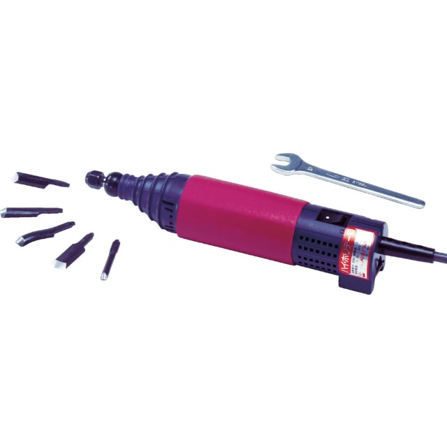 ●木に触れた時だけ超高速振動となるので、正確にシャープに彫れ、しかも安全です。●415gと軽く手にフィットし操作容易です。●振動数(min[[の-1乗]]):10000●電源(V):AC100●電源コード長さ(m):2●外径(mm):42●消費電力(W):55●全長(mm):218●機能・特性(回/分):振動10000●機能:振幅1mm●取付可能刃厚(mm):4mmφ・当社共通替刃●長さ(m):電源コード2m●チャック径(mm):4●寸法:42×218●定格電流:0.55A●刃幅制限有り12mmまで●押付圧:2.5kg以内●握り径:42mm●使用時間定格:30分 質量415g