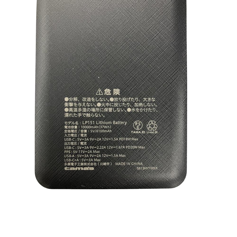 ●最大出力20WのUSB-Cポートと最大出力18WのUSBーAポート搭載 ●大容量10000mAhのリチウムポリマー電池搭載 ●USB-Cは入出力対応でPD18W入力で短時間で蓄電 ●バッテリー残量をデジタル表記
