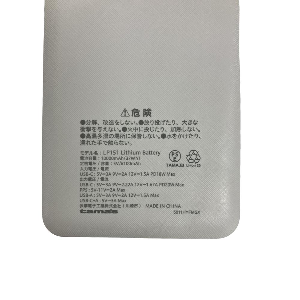 ●最大出力20WのUSB-Cポートと最大出力18WのUSBーAポート搭載 ●大容量10000mAhのリチウムポリマー電池搭載 ●USB-Cは入出力対応でPD18W入力で短時間で蓄電 ●バッテリー残量をデジタル表記