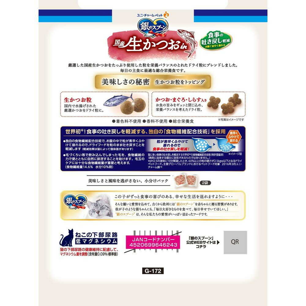 生かつおの美味しさそのまま入りのトッピング粒で、かつお本来の味や香りを楽しめるキャットフード。