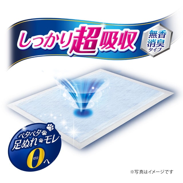 ※当社従来品比小型犬のオシッコ5~3回分(約150cc)をしっかり超吸収、だから経済的ポリマーがオシッコを瞬時に吸収し、長時間ニオイを閉じ込めますスポット吸収でオシッコを小さく閉じ込めるので、広がらないからはしっこでもモレ安心シートサイズ:60×44cm(新聞紙大)