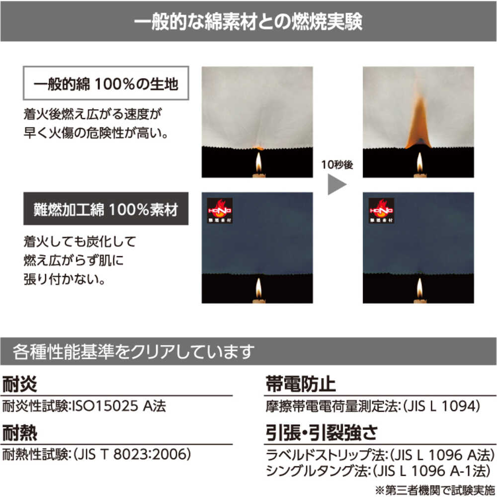 ●空調機能を取り入れたファン付き作業服です。●難燃加工綿100%で作られた耐炎・耐熱・制電性に優れた素材です。●接炎しても燃え上がることなく炭化します。●やわらかく肌触りの良い素材です。●洗濯しても難燃性能は低下しません。●制電性を備え肌にまとわりつかない着心地です。●素材だけでなく、機能的にも防炎性を高めています。●色:シルバーグレー●サイズ:LL●着丈(cm):69●胸囲(cm):126●肩幅(cm):52●袖丈(cm):59裾廻:89●耐炎●耐熱●制電性 質量650g