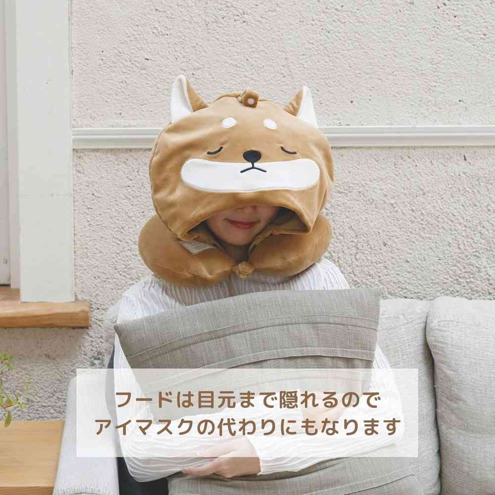 <ねむねむアニマルズ>の柴犬のコタロウ クッションとしても使用できるフード付きネックピローが新登場しました。 キャリーケースに取り付け可能なフック付きで、移動時や旅行シーンにもおすすめです。 フードは目元までしっかり覆える設計のため、アイマスク代わりとしてもご使用いただけます。 ネックピロー本体には、コタロウが描かれた織りネーム付き。 使用しない時はクッションとしてもお使いいただける、実用性の高いアイテムです。