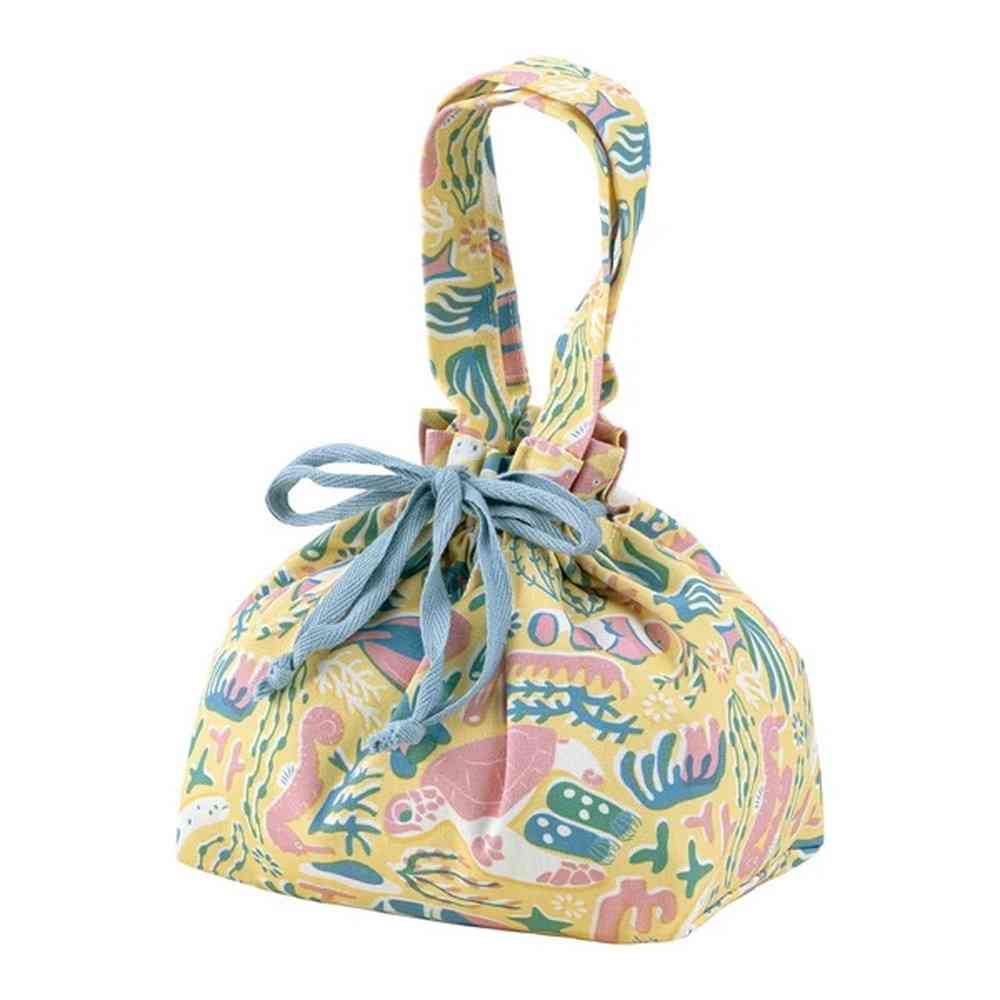 ランチ巾着は、内側には保温・保冷効果のある素材を使用しており、食べ物の温度をキープしてくれます。 お弁当箱とカトラリー、デザートまでしっかり入るサイズ感で、使い勝手も優れています。 開け閉めしやすい巾着タイプです。