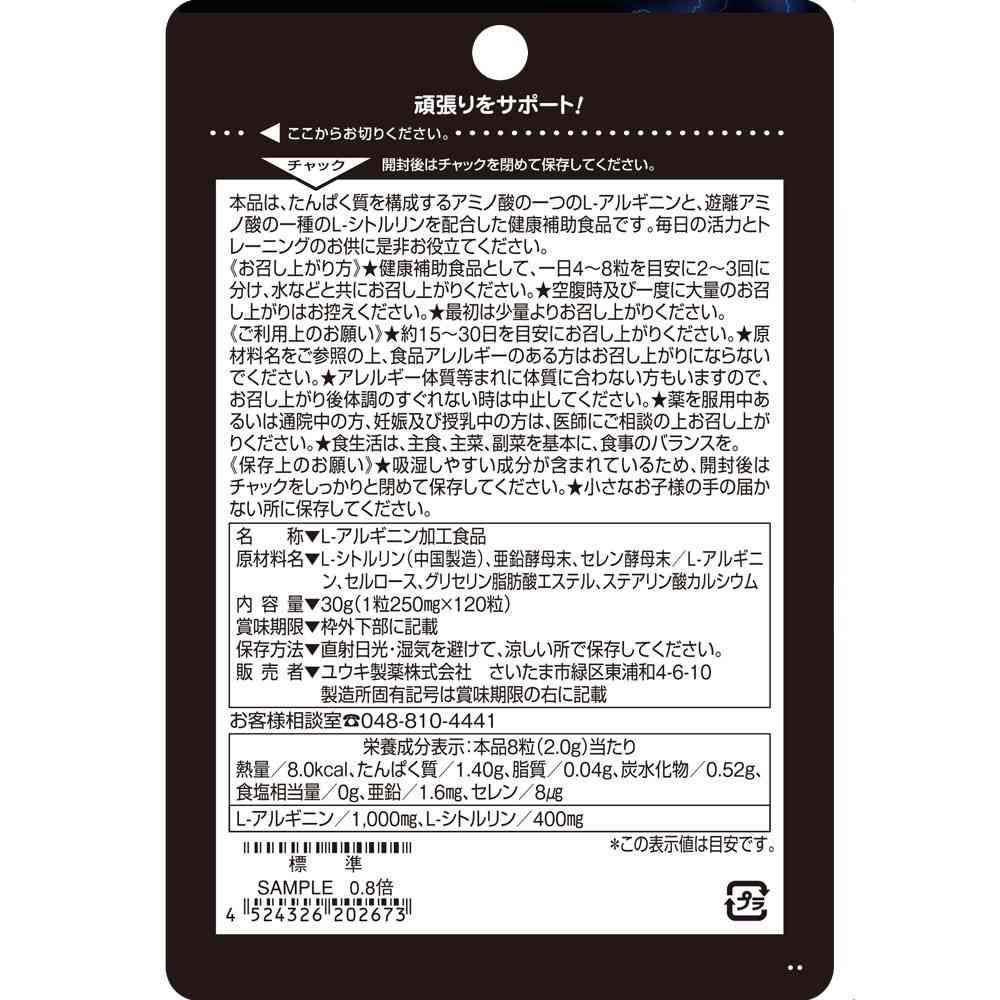 【本品8粒中】L-アルギニン1,000mg、L-シトルリン400mg、亜鉛1.6mg、セレン8μg