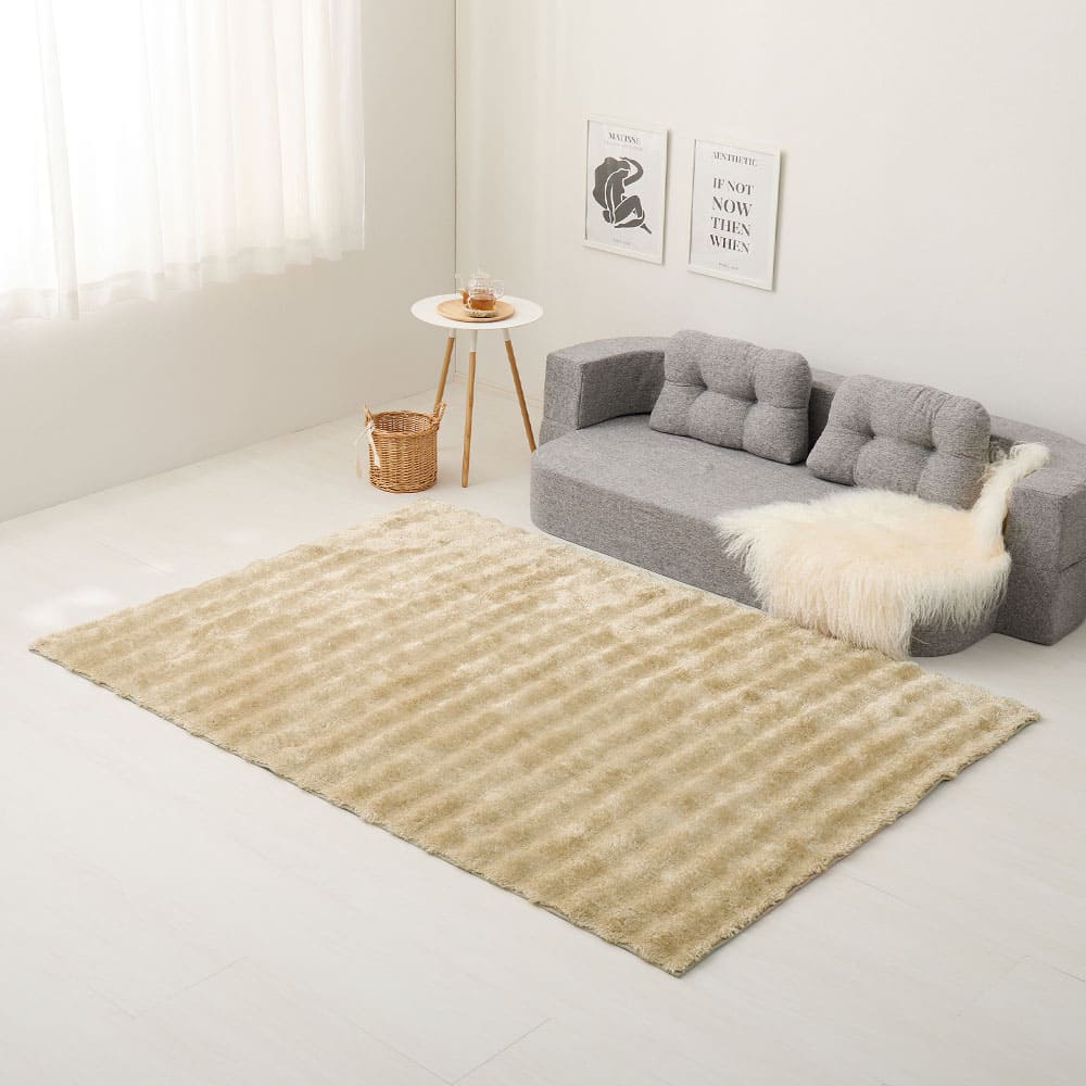 表面をなめらかな凹凸にカットし、独特なポコポコ感を表現。目付量約1100g/m?のしっかりとした密度でボリューム感たっぷりの贅沢な一枚に。光沢のある糸は光の当たり方によって様々な表情をみせてくれます。また、ホルムアルデヒドの試験を乳幼児の基準でクリアしているため、小さなお子さまやペットの居るご家庭でも安心です。裏面にはラグのずれを防止する滑り止め加工付き。ホットカーペットや床暖房の上に敷いてもお使いいただけます。