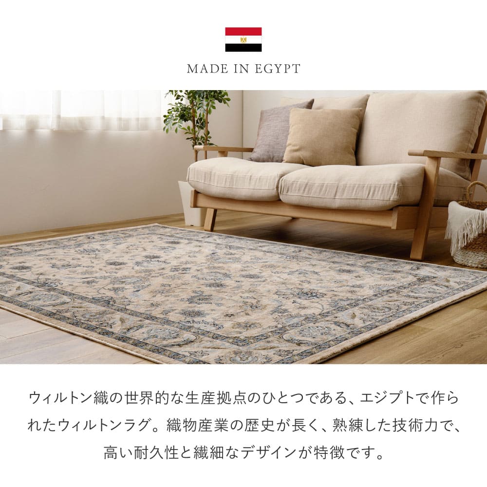 格式高い伝統柄と深みのある色合い、クラシカルなペルシャ調デザインをベースに、繊細な花柄モチーフを緻密に織り上たウィルトンラグ。 500,000ノットの高密度なパイルは、短めの毛足ながらもしっかりとした厚みを感じられ、踏み心地の良さや長く使える耐久性も魅力です。床暖房やホットカーペットとの併用も可能で、冬は暖かく夏も快適に。 気品あるデザインと高い実用性を兼ね備えたこのラグで、お部屋にワンランク上のインテリアコーディネートを取り入れてみませんか。