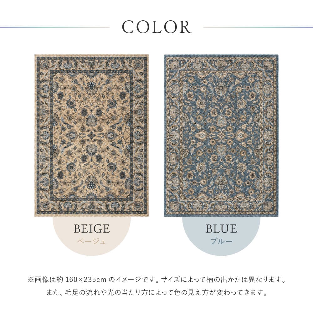 格式高い伝統柄と深みのある色合い、クラシカルなペルシャ調デザインをベースに、繊細な花柄モチーフを緻密に織り上たウィルトンラグ。 500,000ノットの高密度なパイルは、短めの毛足ながらもしっかりとした厚みを感じられ、踏み心地の良さや長く使える耐久性も魅力です。床暖房やホットカーペットとの併用も可能で、冬は暖かく夏も快適に。 気品あるデザインと高い実用性を兼ね備えたこのラグで、お部屋にワンランク上のインテリアコーディネートを取り入れてみませんか。