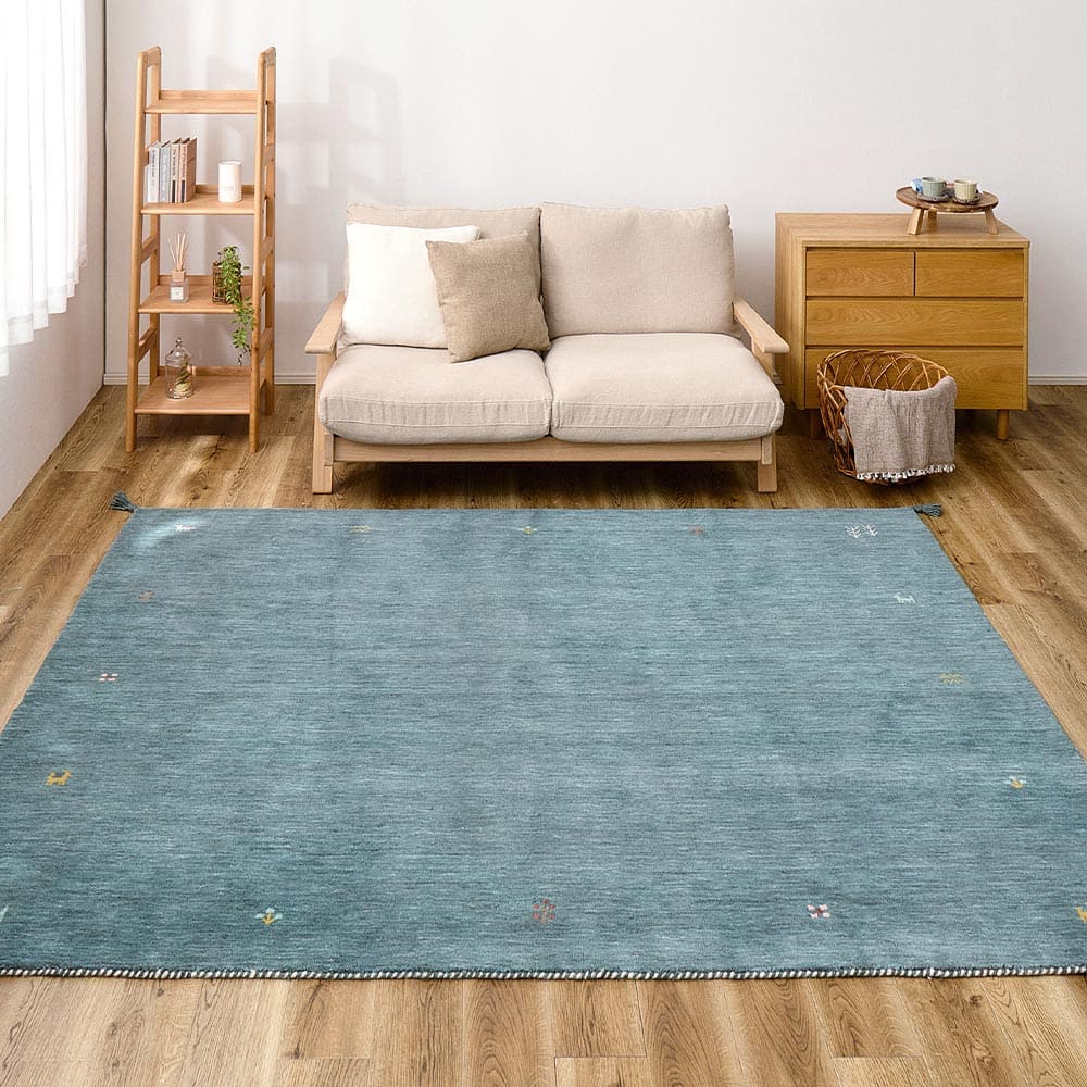 自然のぬくもりを感じさせる落ち着いた色合いが魅力のギャッベ「TXシリーズ」。 モダンにもナチュラルにも心地よく馴染み、お部屋に穏やかな雰囲気をもたらします。 たっぷりの天然ウールを織り込み、ふんわりとした足ざわりと優れた弾力性を両立。夏はさらりと涼しく、冬はあたたかく、一年中心地よくお使いいただけます。また、ウールには水をはじきやすい性質もあり、汚れに強いのも特長。ホットカーペットや床暖房にも対応し、通年使いやすい一枚です。