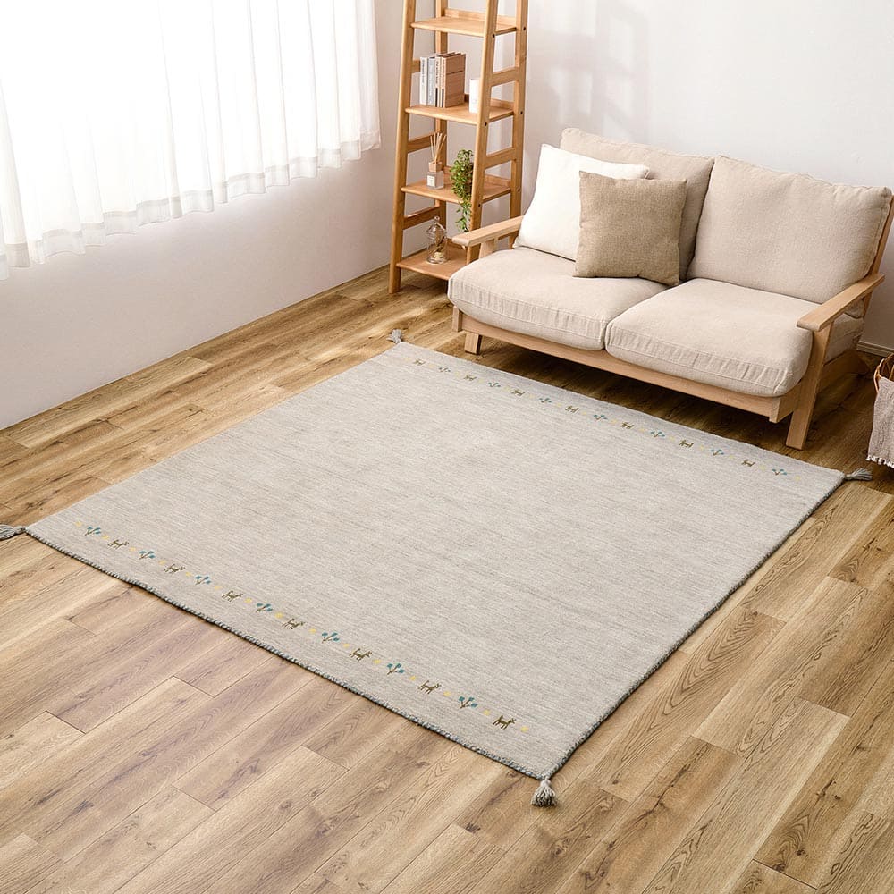 自然のぬくもりを感じさせる落ち着いた色合いが魅力のギャッベ「TXシリーズ」。 モダンにもナチュラルにも心地よく馴染み、お部屋に穏やかな雰囲気をもたらします。 たっぷりの天然ウールを織り込み、ふんわりとした足ざわりと優れた弾力性を両立。夏はさらりと涼しく、冬はあたたかく、一年中心地よくお使いいただけます。また、ウールには水をはじきやすい性質もあり、汚れに強いのも特長。ホットカーペットや床暖房にも対応し、通年使いやすい一枚です。