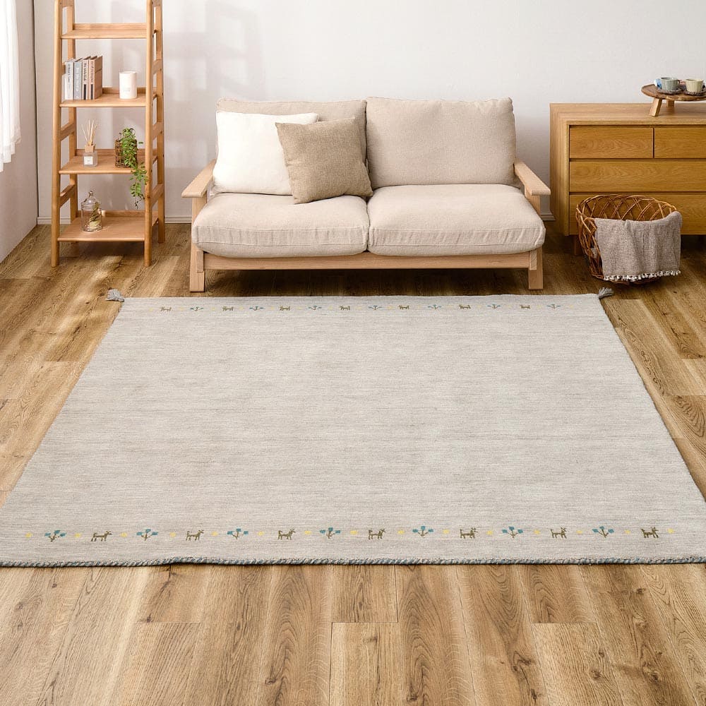 自然のぬくもりを感じさせる落ち着いた色合いが魅力のギャッベ「TXシリーズ」。 モダンにもナチュラルにも心地よく馴染み、お部屋に穏やかな雰囲気をもたらします。 たっぷりの天然ウールを織り込み、ふんわりとした足ざわりと優れた弾力性を両立。夏はさらりと涼しく、冬はあたたかく、一年中心地よくお使いいただけます。また、ウールには水をはじきやすい性質もあり、汚れに強いのも特長。ホットカーペットや床暖房にも対応し、通年使いやすい一枚です。