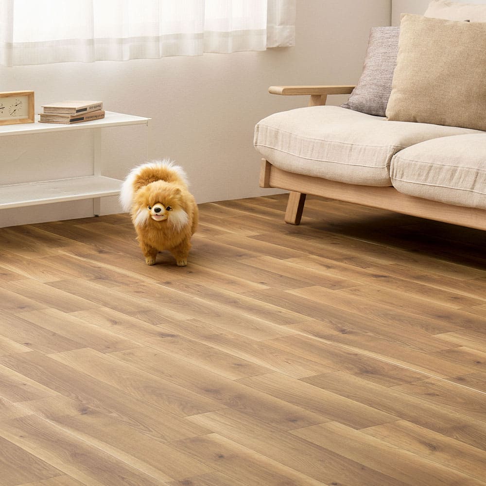 表面のコーティングによりワックスいらずでお手入れ簡単!防滑性・耐久性を備え傷がつきにくく、通常のクッションフロアより厚みがあり適度なクッション性でペットの足腰への負担を軽減します。抗菌・抗ウイルス機能付きで衛生面も安心。1枚の幅が約91cmずつにカットされているので扱いやすく、つなぎ合わせて敷き詰めるだけなので設置も簡単。カットもできるため必要な場所に応じてお使いいただけます。