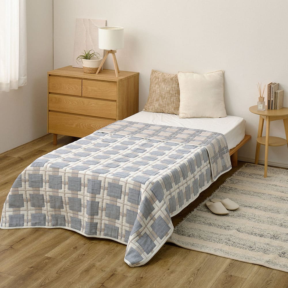 コットン100%のやさしさに包まれて、自然素材ならではの心地よさを感じるガーゼケット。肌に優しく、通気性・吸湿性の高いコットン素材は、夏はさらっと涼しく、冬は暖かさを感じられ、年中快適にお使いいただけます。毎日気兼ねなく使えるよう、ご家庭で気軽に丸洗いOK。また、洗うたびにやわらかさが増していくのも嬉しいポイント。日々の暮らしに寄り添いながら、使うほどふんわりと馴染みます。柔らかなトーンのやさしい色合いに、ふっくらと立体的な織りでナチュラルな中にも高級感のあるデザイン。インテリアに自然と溶け込みながらも、さりげない華やかさをプラスしてくれるアイテムです。