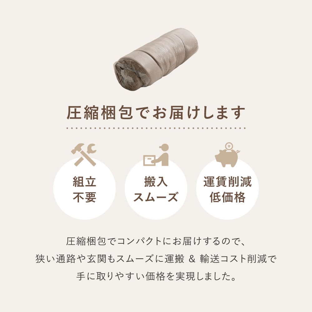 ※開封後、製品が元の形に戻るまでの時間は、環境などの条件によって異なります。また、圧縮によるシワが見られる場合がありますが、ご使用いただくうちに自然になじみます。